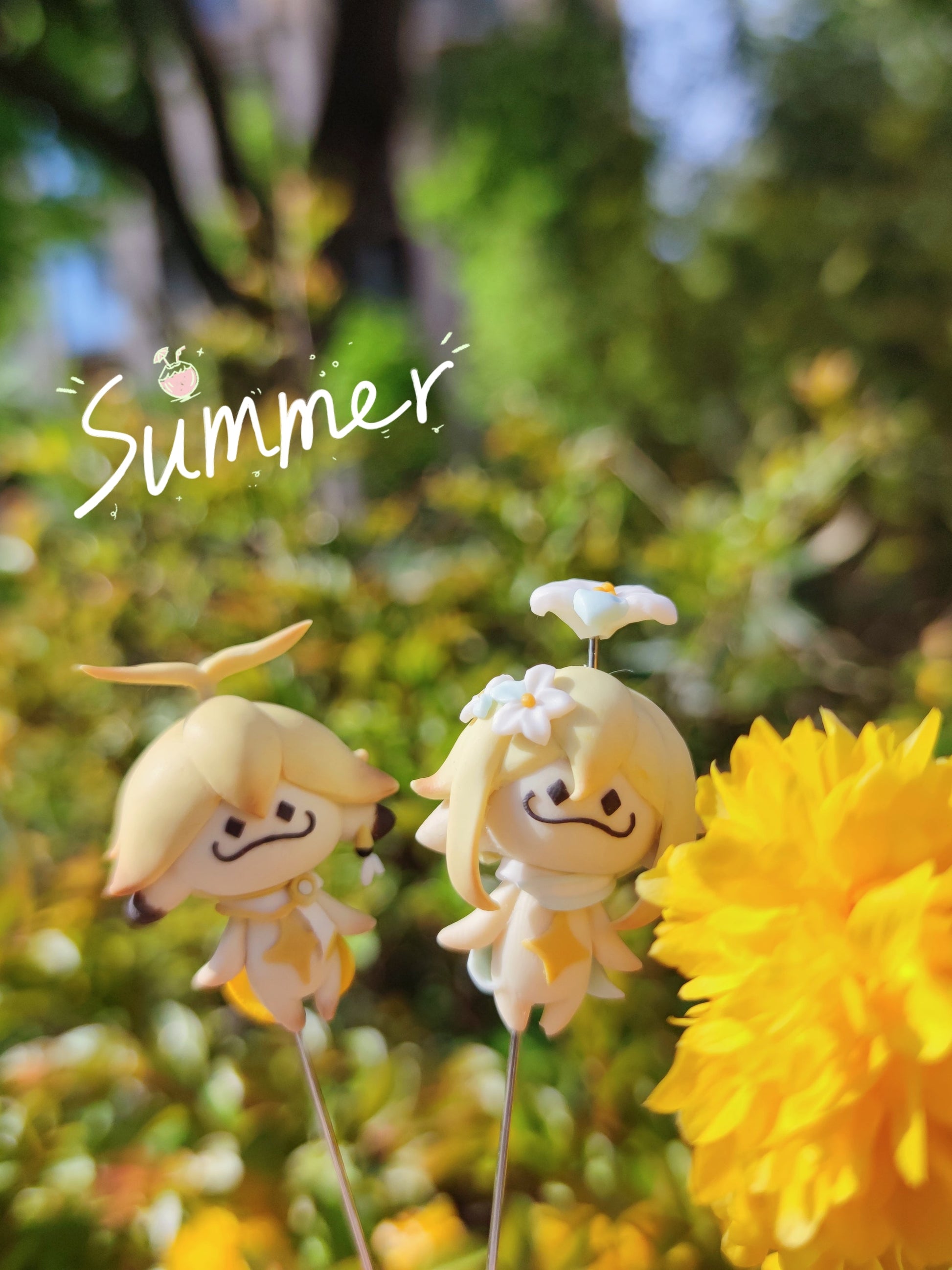 Will contain a aranara and a garland, and a simple green meadow base.
